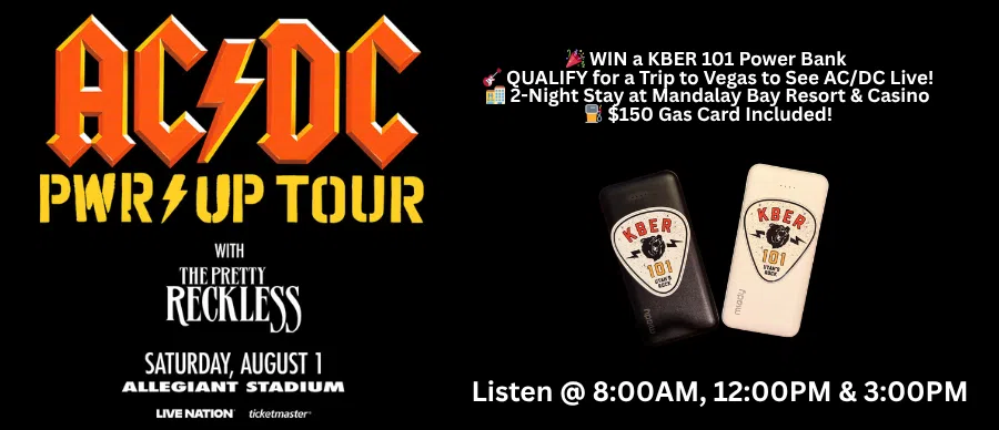 POWER UP with KBER 101! You could be heading to Las Vegas to see AC/DC - Power Up Tour 2026 With The Pretty Reckless Allegiant Stadium - August 1 Tickets On Sale: November 7, 2025 @ 11AM Listen to Win...